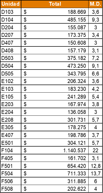 En conformidad con la Ley de Copropiedad Inmobiliaria, se adjunta listado de unidades cuya deuda de gastos comunes sobrepasan los 3 meses de deuda y, por consecuencia, son afectos a corte de suministro eléctrico.
