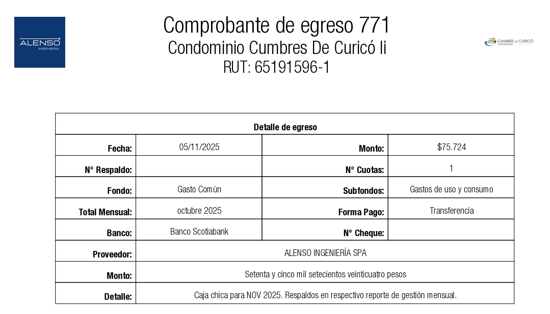 - CAJA CHICA (ítem 2.4): el documento indica "a utilizar en SEPTIEMBRE 2025". Debe decir "NOVIEMBRE 2025".